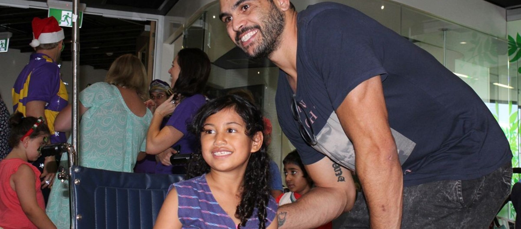 Queensland Origin star Greg Inglis visited the Lady Cilento Children's Hospital this week to join in the fun of the Starlight Foundation’s Christmas party.