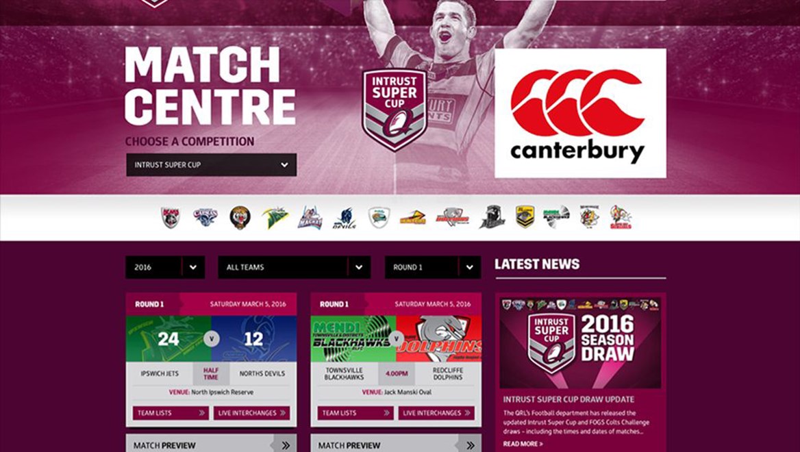 In a first for the QRL’s Major Competitions, fans will be able to access instant data and live scores as matches unfold in the Intrust Super Cup, FOGS Colts Challenge, Mal Meninga Cup and Cyril Connell Cup in 2016.