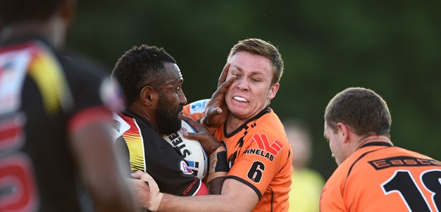 Another Tiger to stand up tall in the unexpected hammering was prop Patrick Kaufusi, who played 79 minutes and 59 seconds before suffering what looked like a broken nose on the second-last play of the game.