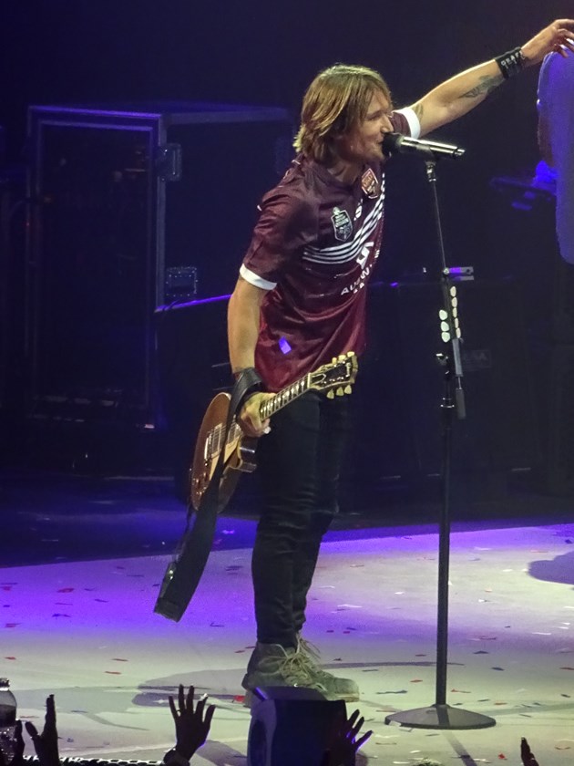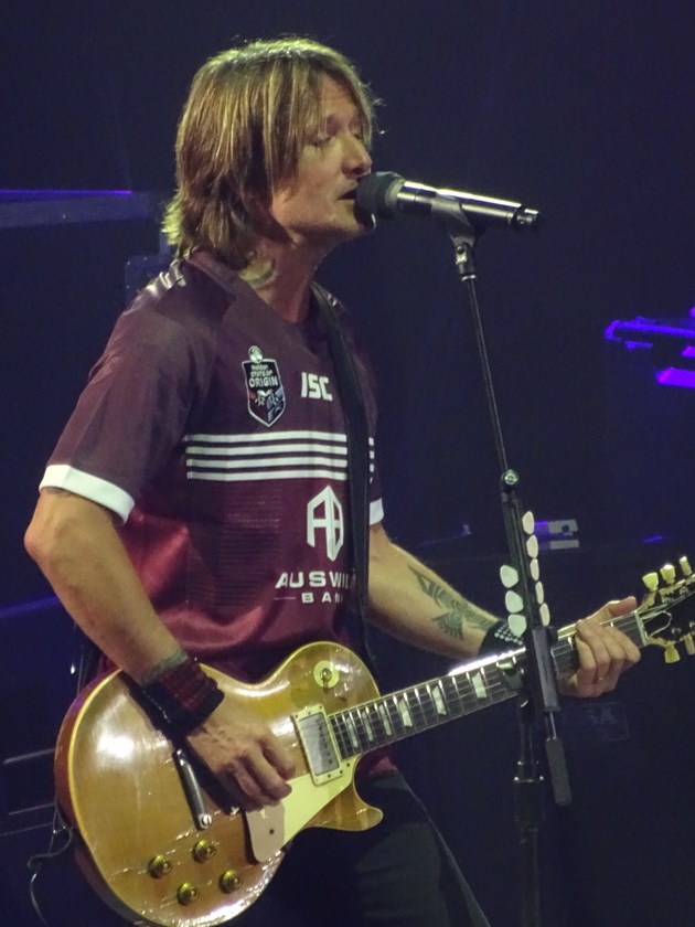 Country music star Keith Urban donned a Queensland Maroons jersey as he wowed crowds at the Brisbane Entertainment Centre during his Graffitti U World Tour at the weekend.