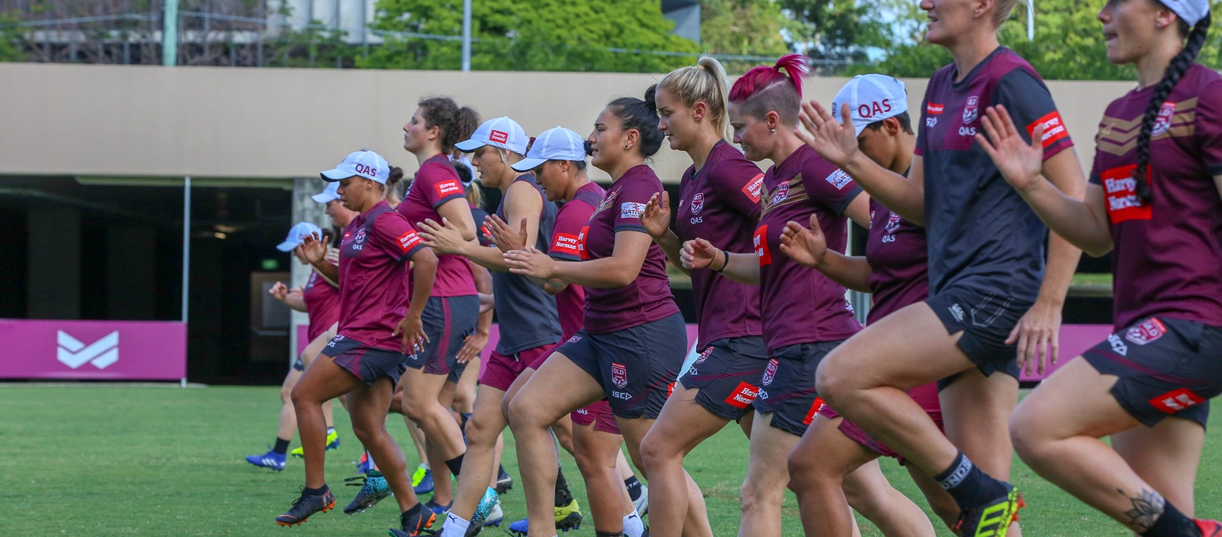 Queensland's top women rugby league players, which make up Queensland's State of Origin training squad, got together at Red Hill today for a hit-out.