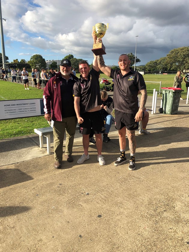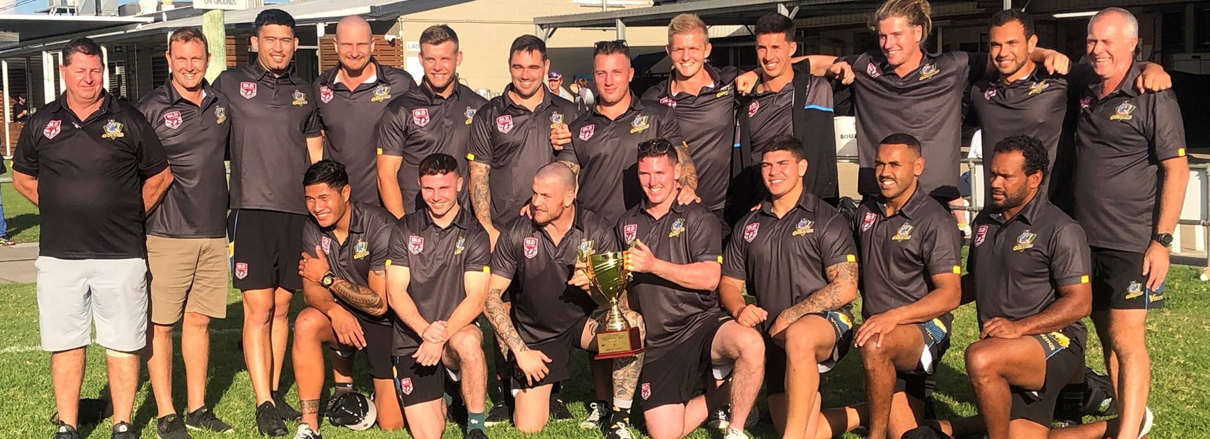 Gold Coast Captains, Jack Martin and Mike Gray were on hand to accept the Alpha Sport trophy from SEQ chairman Brad Tallon.