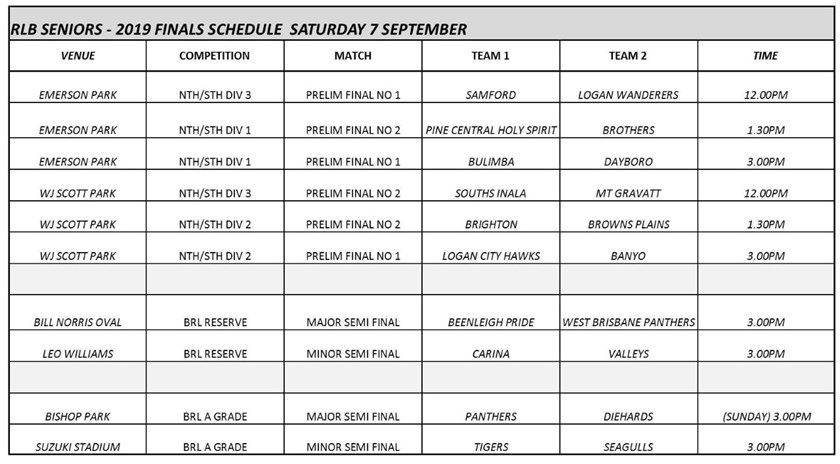Preliminary finals for all three grades of the InTech Rugby League Brisbane senior competitions will be held this coming weekend.