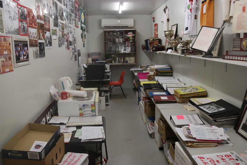 The memorabilia shed contains literally thousands of pieces, from medallions to trophies, programs, scrap books, jerseys and photos ... even a vinyl LP recorded by former Australian representative player Father John Coote.