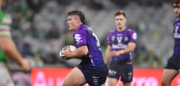 A sustained run of possession for the Storm led to a second try in the 20th minute when Hughes danced around a couple of Raiders defenders from close range to make it 12-2.
