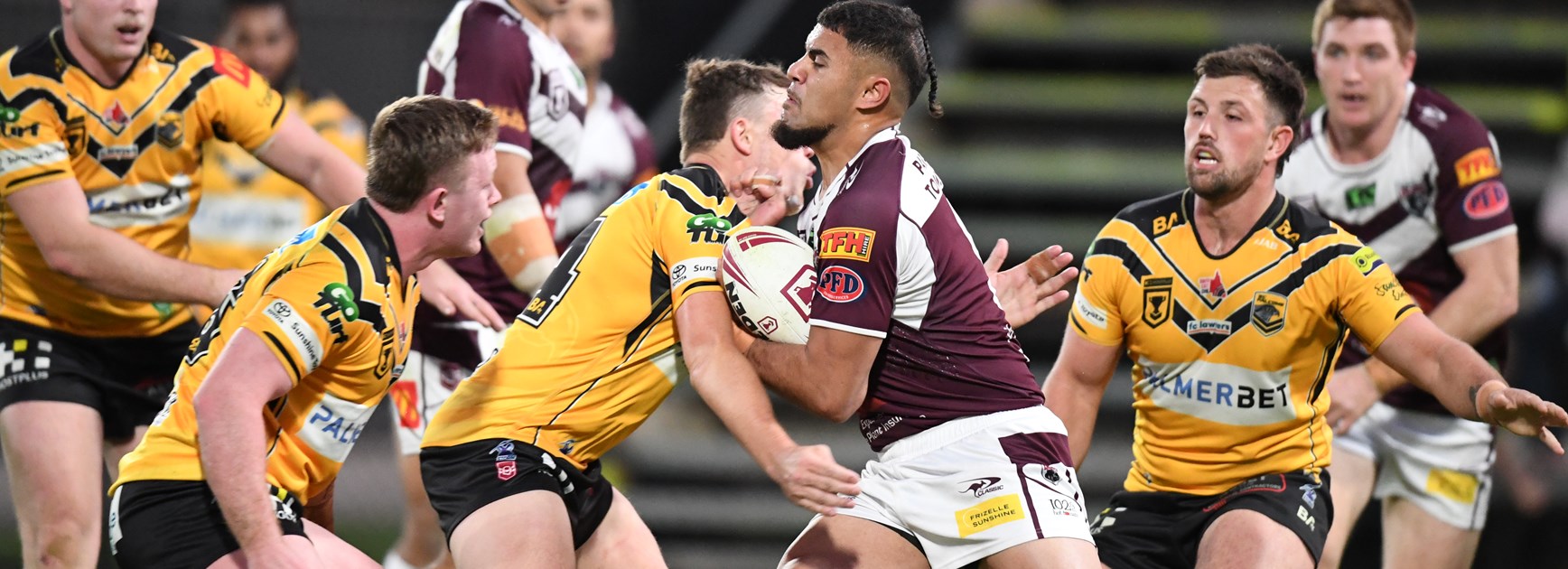 The Burleigh Bears maintained their position on the top of the ladder following a 32-22 victory against the second-placed Sunshine Coast Falcons with in-form winger Alofiana Khan-Pereira scoring a hat-trick.