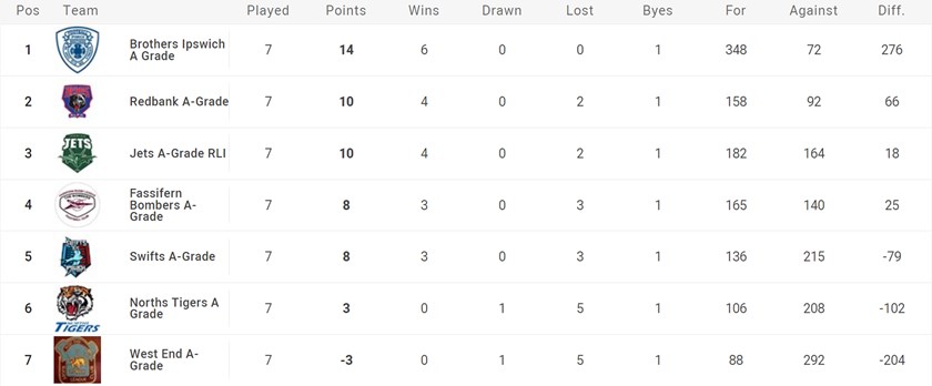 Brothers Ipswich 96 def West End Bulldogs 12