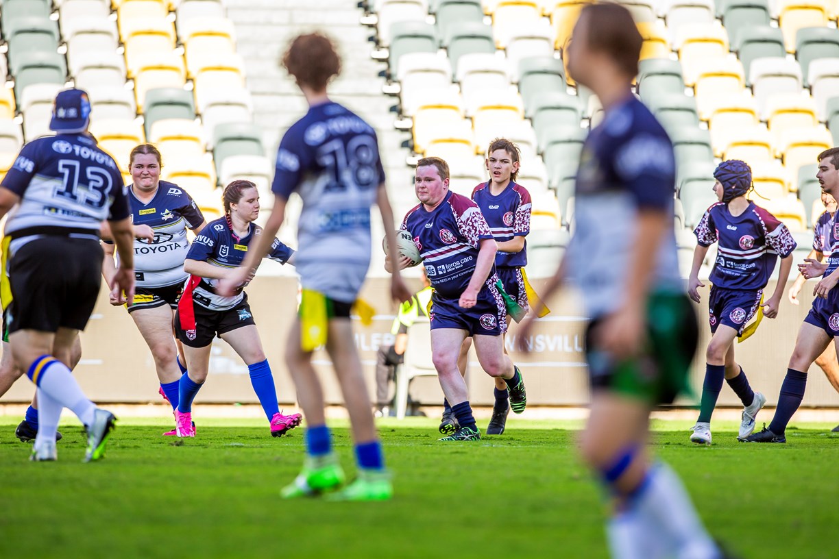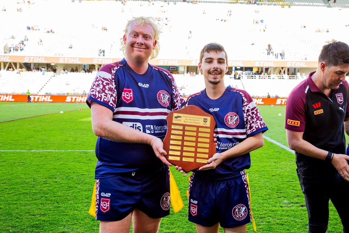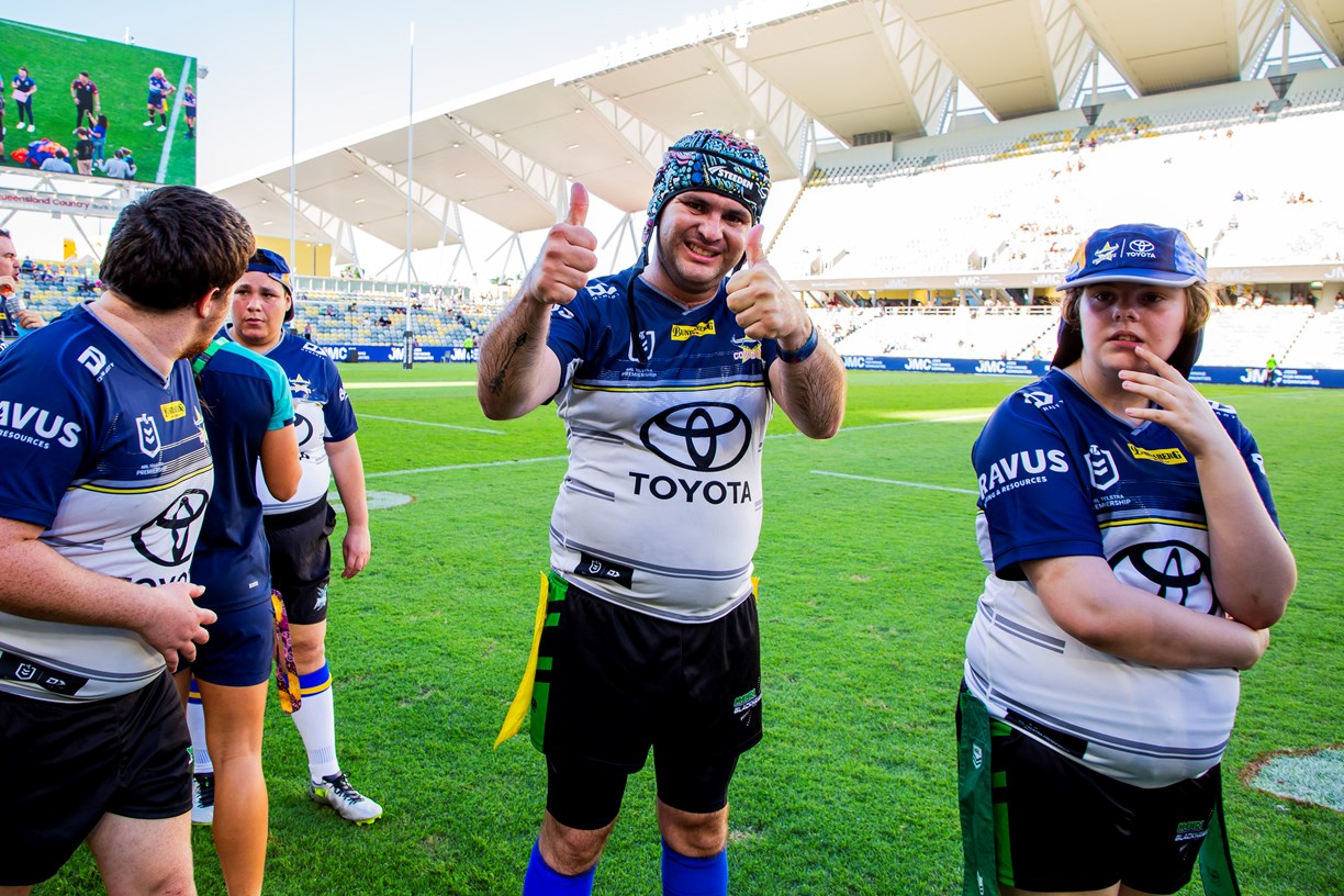 Mackay defeated Townsville on Saturday in their annual All Abilities contest, the Endeavour Cup, named for the disability support charity Endeavour Foundation. The players of all ages had a fantastic time on the big stage in Townsville playing ahead of the Cowboys v Raiders NRL clash. Photos: Cowboys Media
